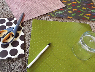 Cut out scrapbook paper, wrapping paper or fabric into whatever design you want (the dinosaurs are for my nephews).